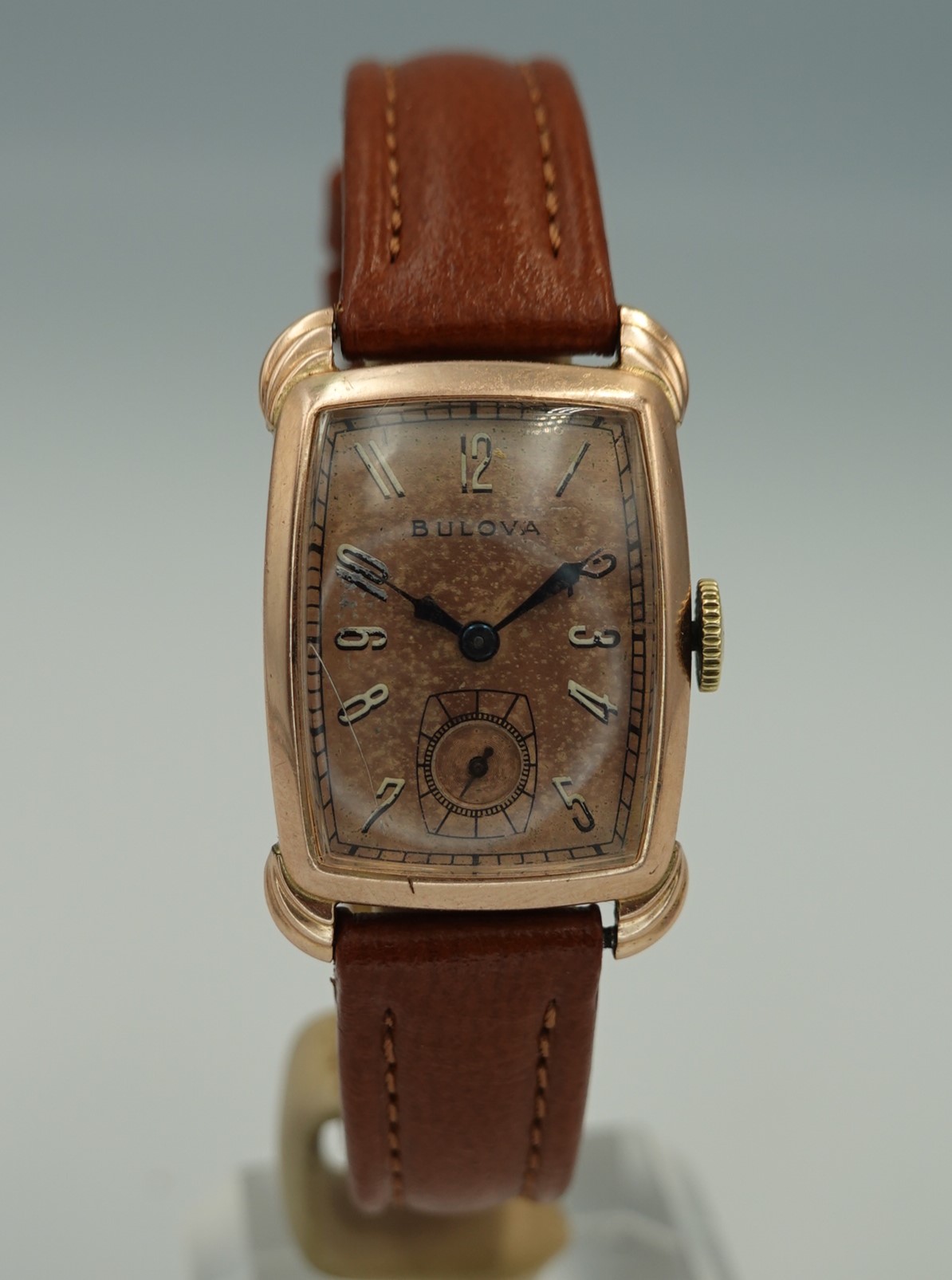 A nice example of a 14k rolled gold Bulova Senator, with a definitive date mark showing it was made in 1947.