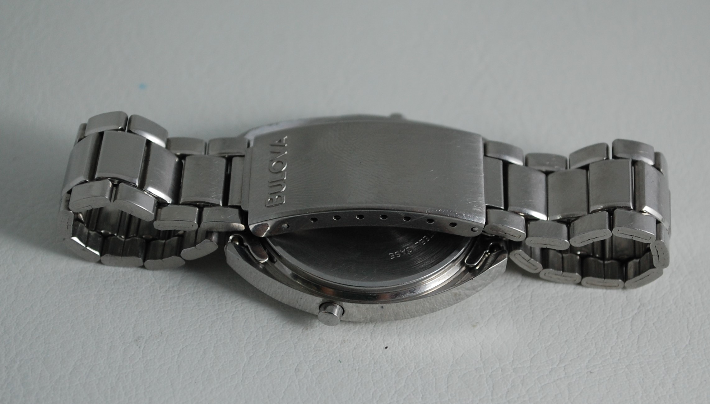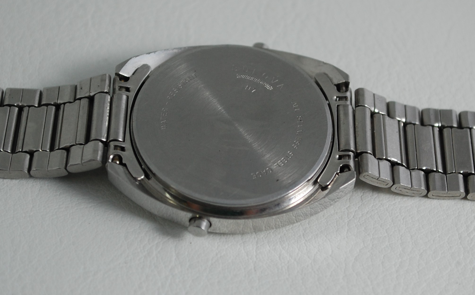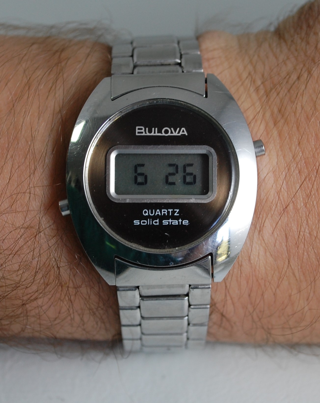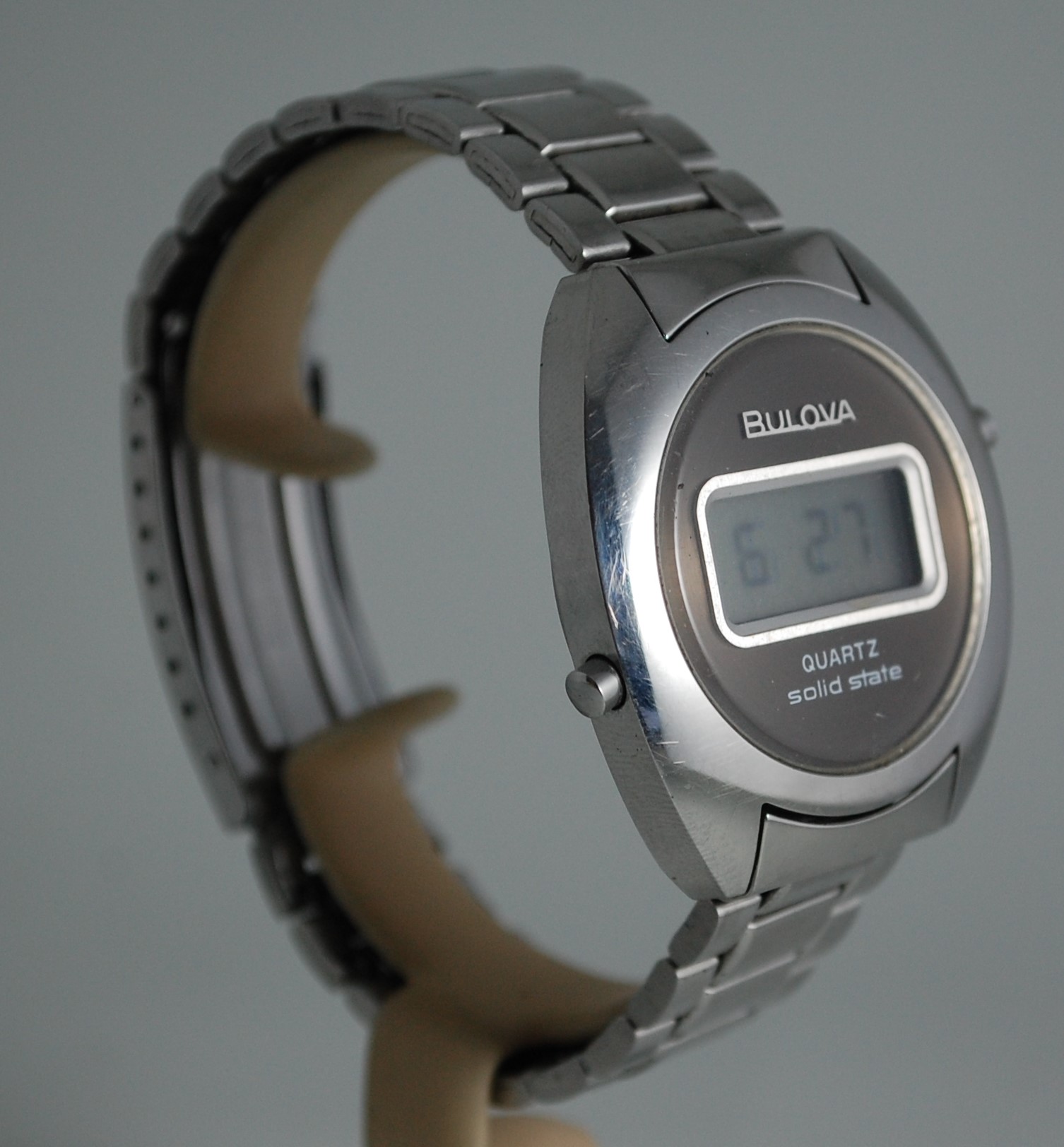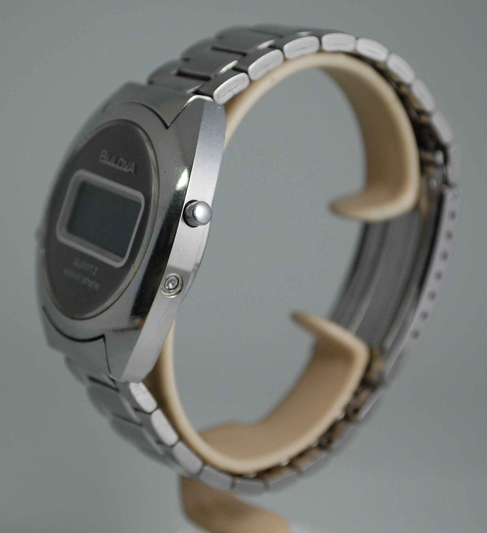 An early LCD watch from Bulova, in a solid stainless steel case and still on the original bracelet.