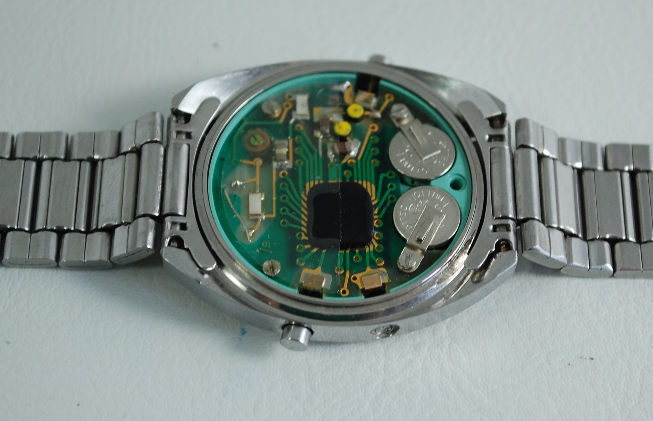 LCD watches first came out in 1973, but it wasn’t until 1977 that they became the watch to have as prices came down and competition kicked in. As this competition continued, standards for most companies dropped and material quality was reduced accordingly. So this watch has a twin battery set up, both of which will be renewed before this is sent out, cased in solid stainless steel. The top right button changes the function, to date and then to running minutes and seconds (this being an early watch you only have a four digit readout, so you can not display HH:MM:SS at the same time). The bottom left pusher works the light, which does still function but these were never very bright when new. To adjust the time or date you use the recessed button on the right hand side of the case.