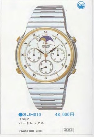 From the serial number on the case back we can accurately date this watch to being made in February 1985. We have found this model in the Seiko catalogue from 1985, on the same bracelet (AA05B), with a price of ¥48,000.