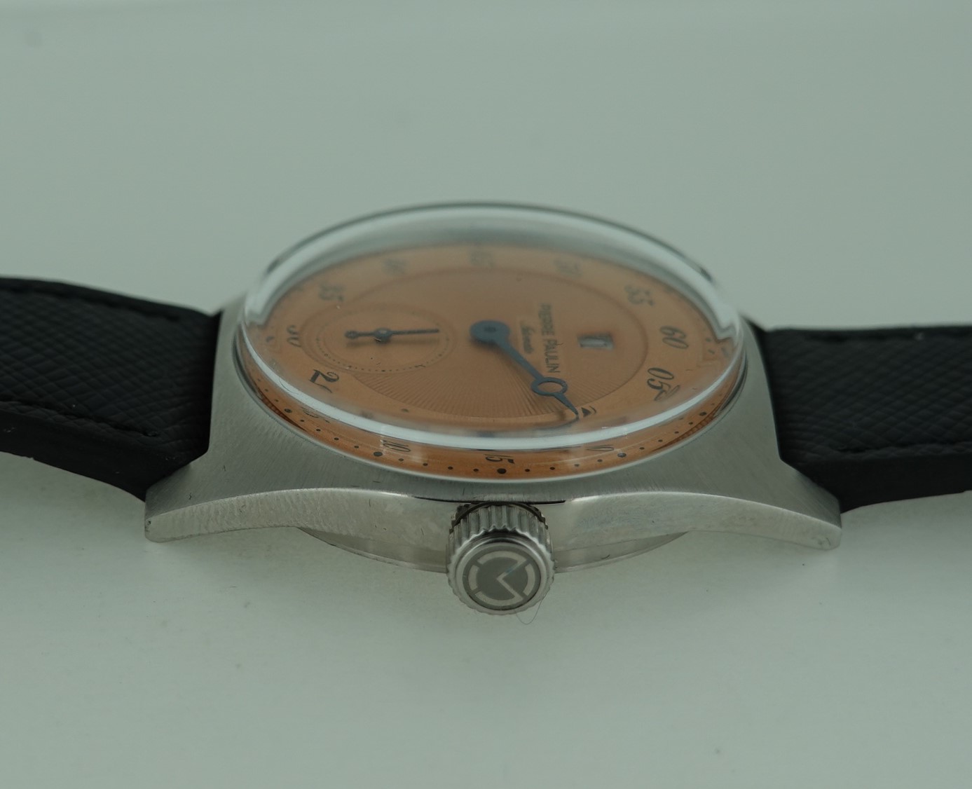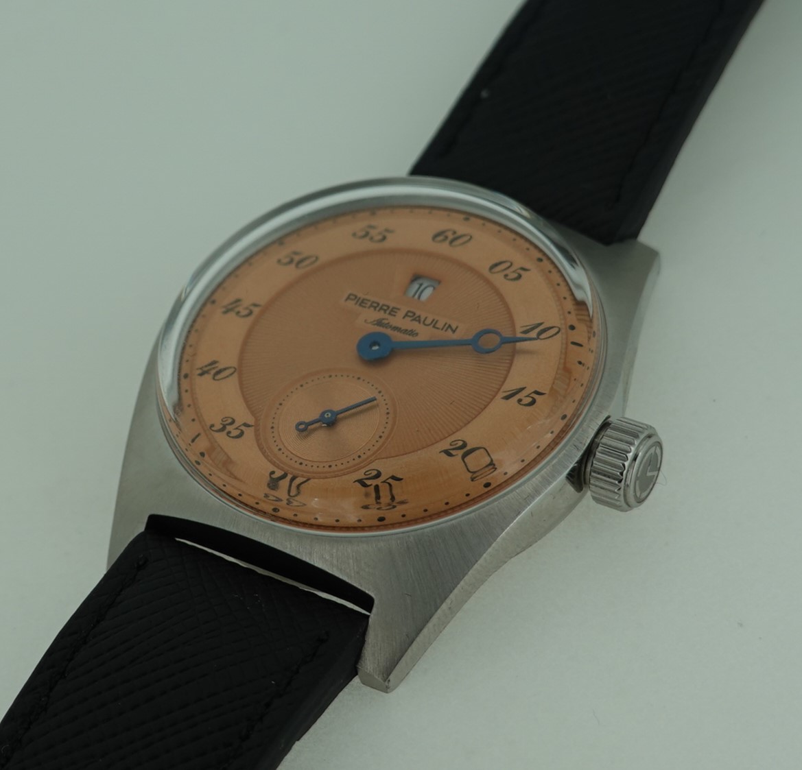 Incredible value for money, this Pierre Paulin watch is a proper mechanical jump hour watch and like new. 36mm, Salmon dial version.