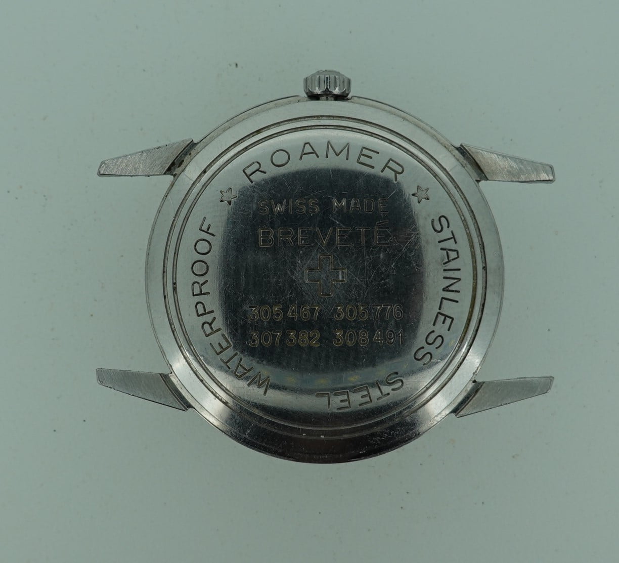 There are few ways to be absolutely accurate with Roamer watches, so we will have to use our detective skills!  The movement fitted in this watch was in production between 1961 and 1973, which gives us a narrower window.  The case used in this model has the model number on the inside, and from 1966 the cases had the model number on the outside too.  So this watch must have been made between 1961 and 1966, and we have picked a mid point year.