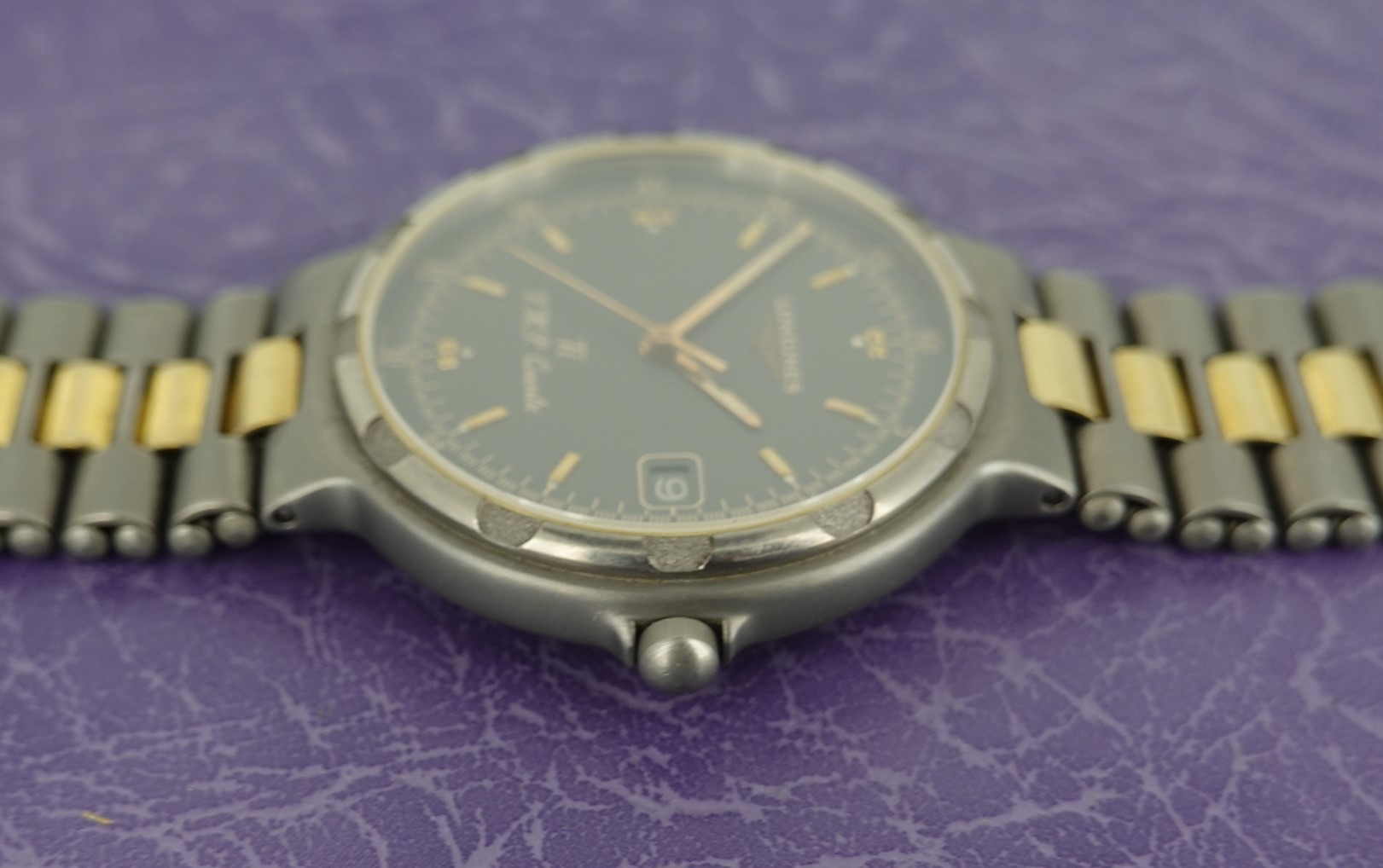 These VHP watches sold in very good numbers, but finding good ones now isn’t as easy as you might expect. This example isn’t perfect either – the last three links on the bracelet are made of steel rather than titanium. Other than that, it is in nice shape. The video shows the EOL (end of life) indicator making the seconds hand jump in five second increments, but we will install a brand new battery before sending the watch out to the new owner. You can also set the hour hand independently for quick adjustment, potentially whilst crossing time zones. The bracelet is quite long and our sister website, SpareLinks.com, may have extra links if required. The bracelet has been cleaned in our ultrasonic bath. The watch is signed on the dial, case, movement and clasp.