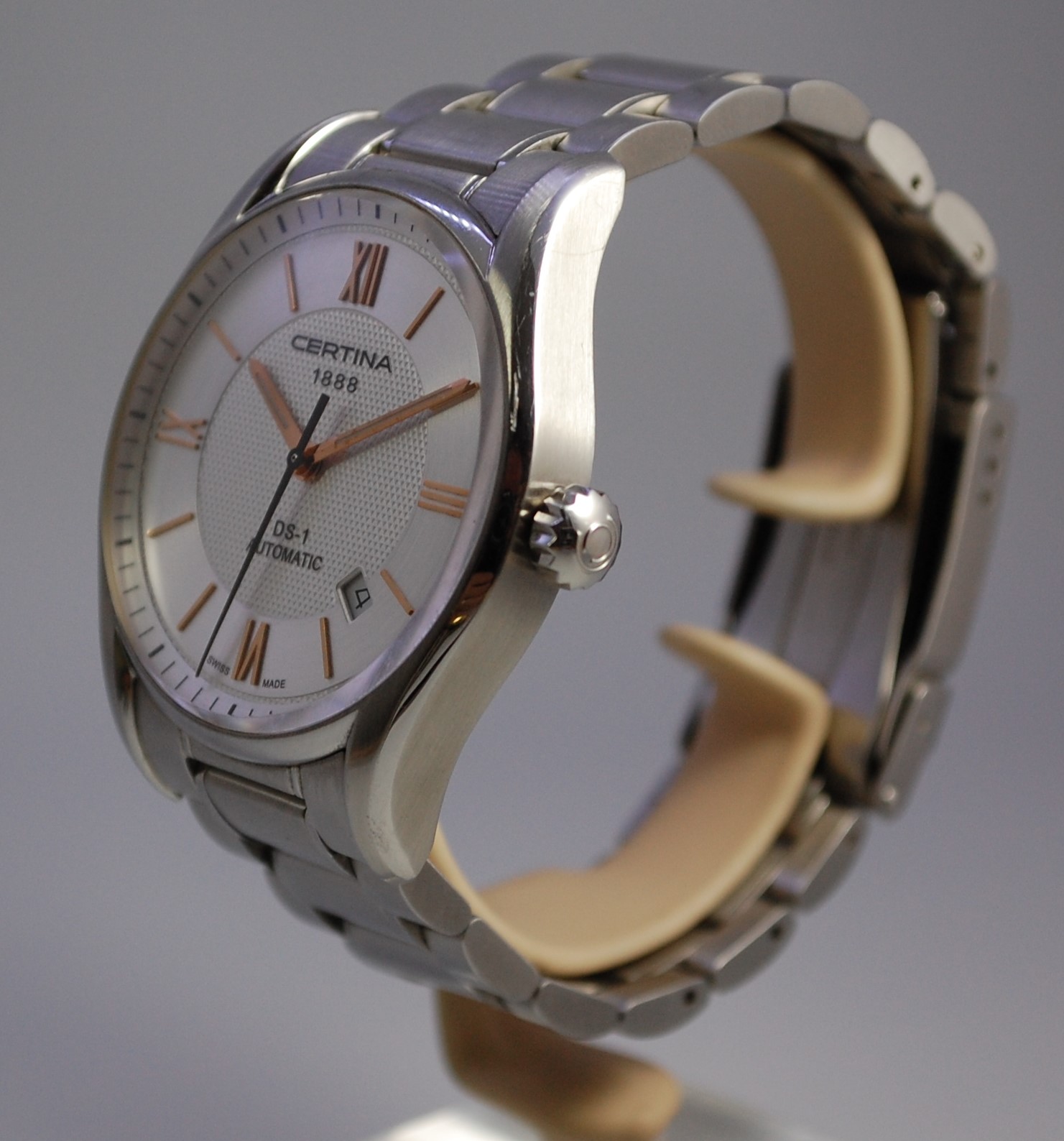 This Certina DS-1 roman, model number C006.407.11.038.01, has the widely used and respected ETA 2824 automatic movement and is all original.